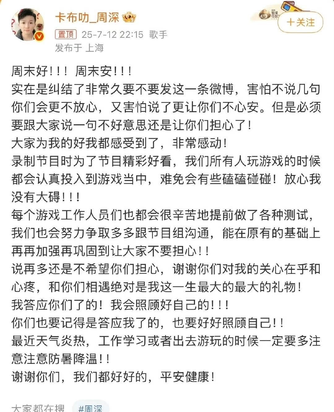 粉丝看到这一幕感到担忧,觉得存在安全隐患,并对周深示意爱怜。